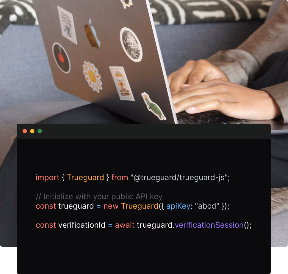 and integrate Trueguard API to your backend to get risk signals and scores. Minimal friction, instant value.